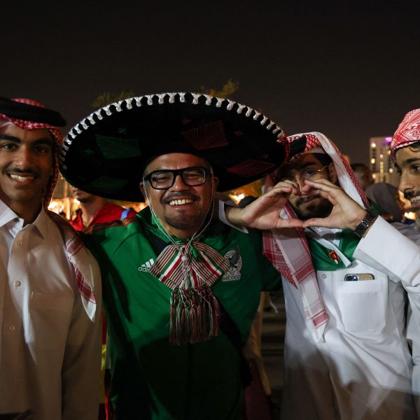 La Parka y el Hijo del Santo llegaron al Mundial Qatar 2022: aficionados mexicanos simulan enfrentamiento de lucha libre en el Metro de Doha (Video)