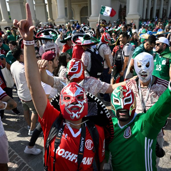 Aficionado del Tri muestra su fanatismo por México y Estados Unidos vistiendo una camiseta binacional y el sombrero de charro más grande del Mundial Qatar 2022