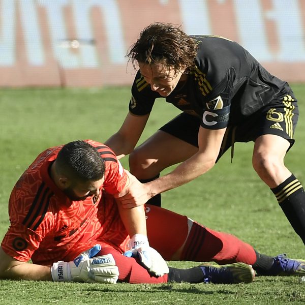 Maxime Crépeau, el portero de LAFC que se fracturó una pierna, se perderá Qatar 2022 pero no dejó de apoyar a sus compañeros