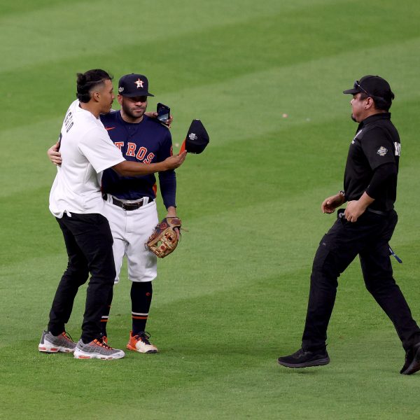 Fanático saltó al terreno de juego para tomarse una selfie con José Altuve y terminó arrestado (Video)