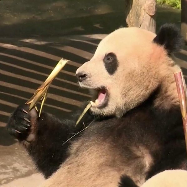 Lo más tierno que verás hoy: una familia de pandas gigantes se sienta a comer en una mesa