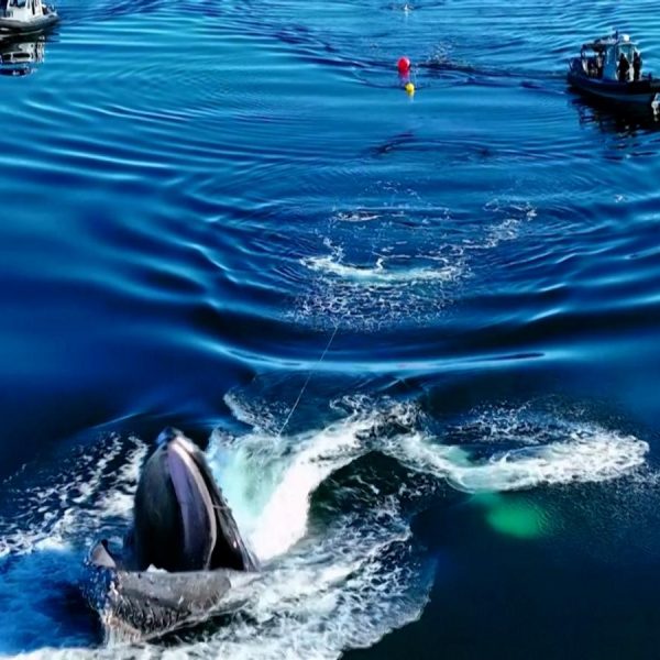 Mira cómo rescatan a una ballena jorobada enredada en una red de pesca