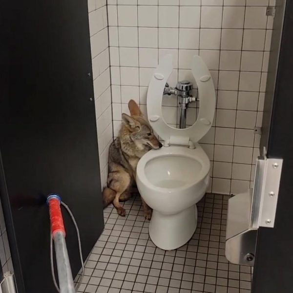 Un coyote asustado se esconde en el baño de una escuela en California. Así lo rescataron