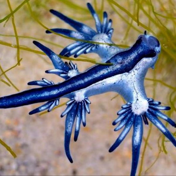 Una babosa de mar venenosa “dragón azul” en la costa de Texas