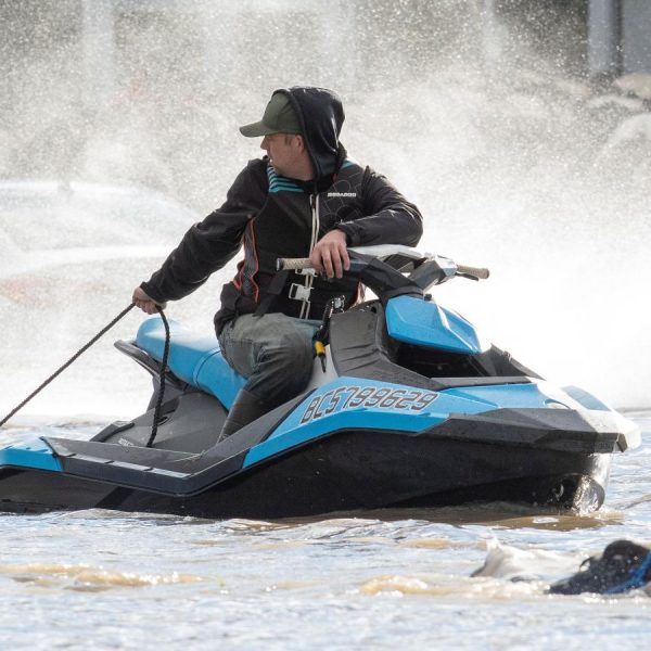 Mira cómo rescatan en motos acuáticas varias vacas que estaban a punto de ahogarse