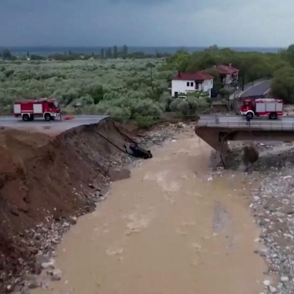 Las lluvias torrenciales en Grecia destrozaron un puente y dejaron aislado a un pueblo