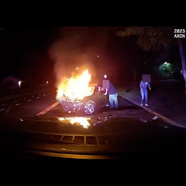 El heroico rescate de un hombre atrapado en un auto en llamas