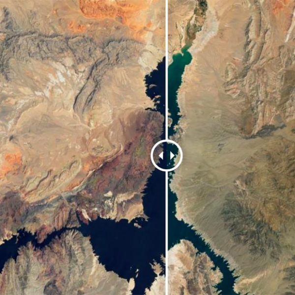 La NASA publica nuevas imágenes satelitales del lago Mead, que muestran que ha perdido grandes cantidades de agua desde el 2000
